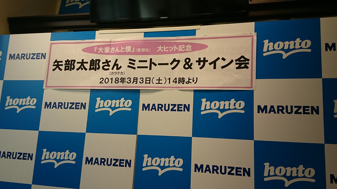 × [PR]上記の広告は3ヶ月以上新規記事投稿のないブログに表示されています。新しい記事を書く事で広告が消えます。 丸善名古屋本店にて行われた人気コミックエッセイ「大家さんと僕」の作者 矢部太郎先生のサイン会に行ってきた。 こういう大きな本屋は久々に来たので、かなりワクワクした! コミックコーナーなんて無くても十分、楽しめるなー。 電波少年的放送局を毎日観てましたと言ったら、そんな人に初めてあったかも? とかなり驚かれた。分かってはいたけど、そんなに視聴者少なかったのか・・・! T部長に、こんな放送観てるヤツなんか居ないと言われていたとか この間も糸井さんが、あの番組は早すぎたと仰っていたとか色々教えて貰えた。 ガッツリ読み込もうと思って文具コーナーでブックカバーと ついでにキャンペーンで出川哲郎REALGACHI消しゴム付きのシャーペンを購入。 てか、よく考えたら矢部太郎と出川哲郎が大人気って今、凄い時代だ! PR