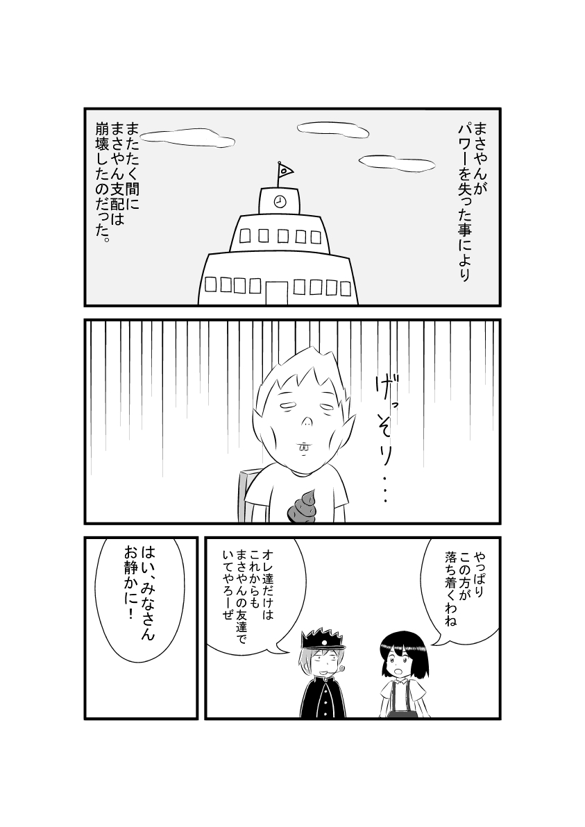現在、第三話(まさやんが遠足で野糞をする話)のラフを制作中ですので