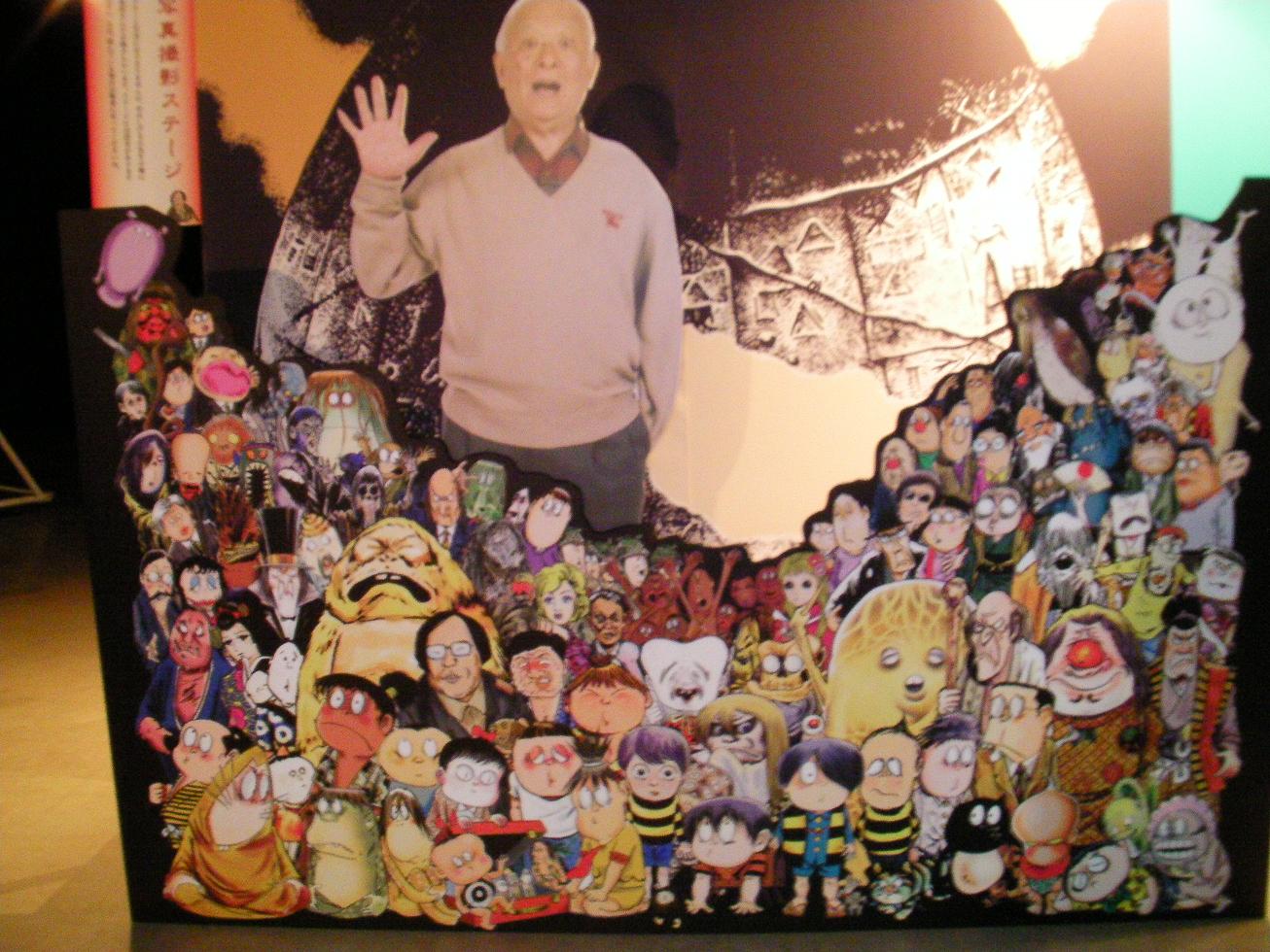水木御大と写真が撮れるコーナー。妖怪に混ざる荒俣氏に注目!