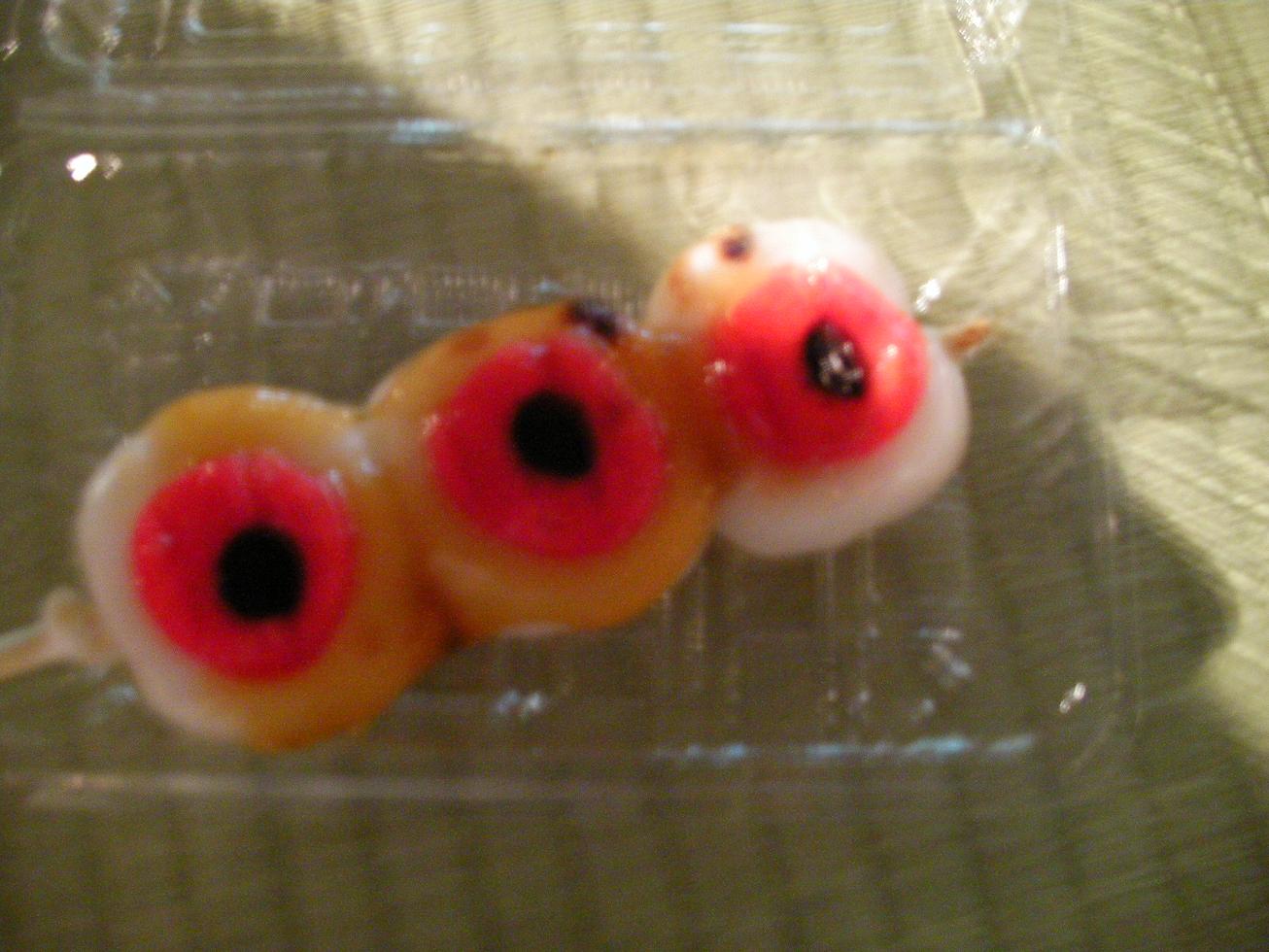 物販コーナーで売ってる目玉団子。他には妖怪のから揚げも!